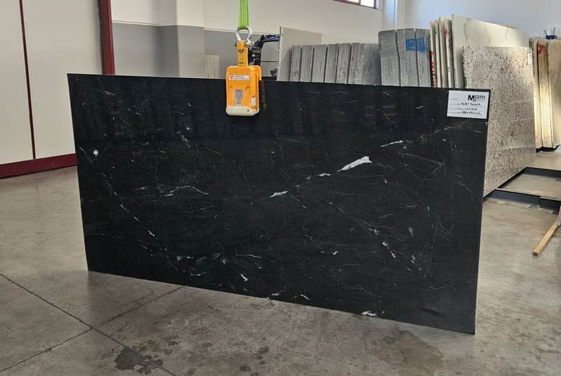 Alby Black also known as Black Mamba, is a beautiful quarzite extracted in Mozambique. The shades of the black background are dark grey colured. Its surface appears almost breached by geometric grooves. This material has a quartz component which makes it hard and acid resistant. It can be an elegant furnishing solution for interiors such as floors, stairs and wall coverings, kitchens, ornamental and worktops, vanities and bathrooms. Outdoor applications are also possible.