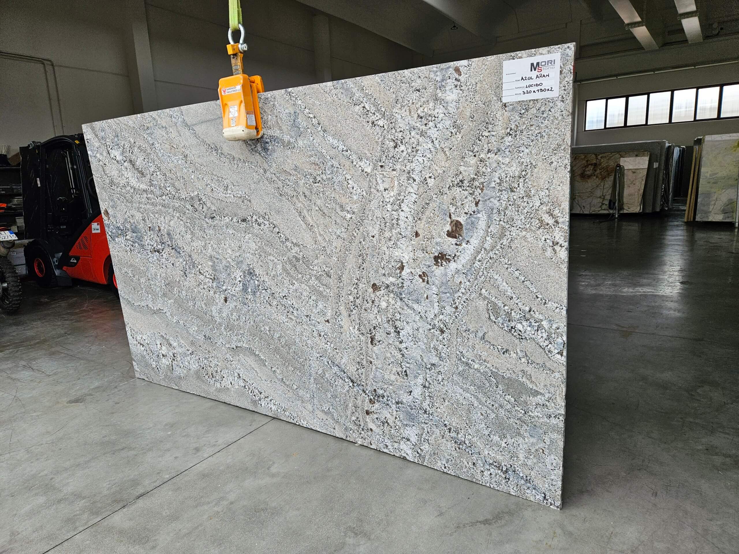 Azul Aran is a vibrant granite from Spain. It is characterised by its lively grey-blue background, streaked with waves of variegated grey-blue and white crystals. Elegance and strong character for those seeking personality and style for their furnishing solutions. Thanks to the mechanical properties of granite, Azul Aran is suitable for all design applications. Recommended for wall cladding, flooring, stairs, countertops, kitchens and bathrooms. Also suitable for all outdoor applications.