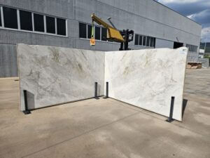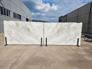 Nuvolato’s fine Calacatta quartzite comes from southern Brazil. The delicate milk-white background mixed with pure white is crossed by veins in warmer ochre and gold tones. Elegant gray-colored inserts light embroidery and enliven the surfaces. From a morphological, Calacatta Nuvolato is classified as dolomite, a type of stone that is extremely hard and suitable for all applications indoor use. Perfect for enhancing refined living, wall cladding walls with open stain poses, flooring, stairs, counter tops, kitchens and sophisticated bathrooms.